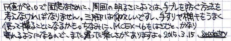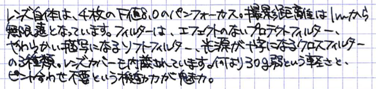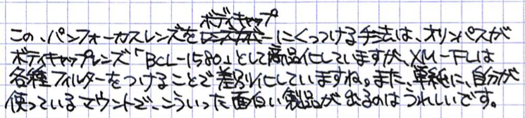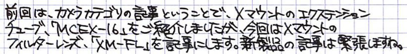 レビュー:Fujifilm XM-FL Category:カメラ Date:2015年03月15日 ごくごくまれに更新するカメラカテゴリ。今回は、発売したばかりの新製品、富士フィルムのフィルターレンズ、XM−FLをご紹介します。カメラ関係のご紹介はまったくもって門外漢なので、あくまで素人の使用感と外観をなでる程度の記事になりますので、ご了承ください。ちゃんとしたレビューはおそらくもっと王手のカメラ関係サイトですぐアップされると思いますので・・・。 パンフォーカスは、最短撮影距離より離れてさえいれば、どこでもピントがあうので、ピント合わせは不要、というよりもできません。レンズカバーも内臓されているので、ダイヤルを回しさえすればすぐ撮影可能になります。 製品としては、オリンパスのボディキャップレンズに近いかな・・・と思っていたのですが、あちらより幾分、このXM−FLの方がしっかりレンズのような気がします。お値段の違いもありますからね。こういう、面白いアクセサリが増えるのは、Xマウントを使っている一人として純粋に嬉しいです。 ただでさえ軽いX−M1のボディにこのXM−FLをつけると、コンデジかと思ってしまうくらいの軽さとコンパクトさになります。このクロスフィルターが面白く、光源や反射が十字のようになります。イルミネーションなどを撮ると印象的になると思います。 上の画像はXM−FLにエクステンションチューブを挟んで撮影したもの。ここまで寄れるようになるとは思っていませんでしたので、嬉しいですね。三脚を使わずに手ぶれを抑えるにはどうすればいいのでしょうか。気軽な街撮りに使いたいレンズですが、そうなると手ぶれが心配なのです。 PR