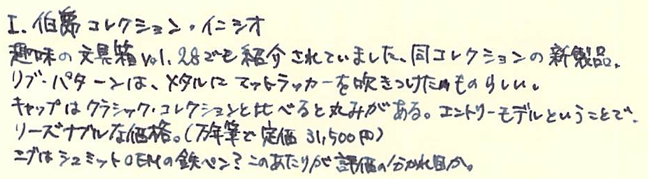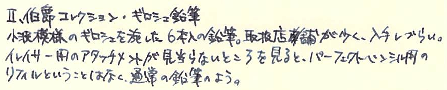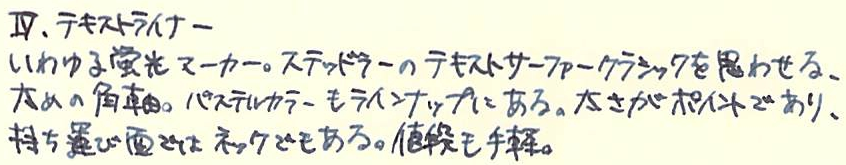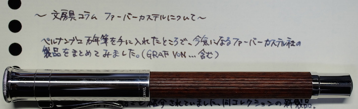 コラム:ファーバーカステルについて Category:筆記具 Date:2014年03月18日 ファーバーカステルについて、といよりも、「気になる製品について」といった 感じでしょうか。すでにイニシオやオンドロウッドは紹介しているのですが、繰り返しになります。 トープ(もぐら色)の他に、ピンクとブラックがカラーバリエーションとしてあります。 万年筆、ペンシル、ローラーボール、油性ボールペンの四種類がそれぞれあり、 計十二種類。よくあるパターンですね。 万年筆は鉄ペンらしく、各界から残念がる声があがっています。 これまでの伯爵コレクションからみると、全体的にまるっこいデザインで、 好みは分かれるかも。 リブパターンの次に有名なのが、このギロシェ模様ですね。 筆記具四点セットもラインナップにあるので、お持ちの方も多いと思います。 この鉛筆はブラウンの他にブラックがラインナップしているのですが、 あまり取扱店は多くありません。ggg13さまからは、 ショップインショップ限定品である、との情報をいただきました。 海外の通販サイトで取り扱っているところを見つけたので、 買ってみようか悩んでいます。 風合いある木軸。ファーバーカステルを象徴する六角軸もいいですね。 個人的にはグリップ部分のくびれがたまりません。 ペルナンブコもくびれているのですが、金属がこういう有機的な 形をしているのに惹かれてしまいます。 この、およそ蛍光ペンらしからぬ渋い色合いがたまりません。(クリアのものもあります) 太めの軸は持ちやすく、安定して同じ太さのラインが引けるように考慮されているらしいです。 お値段は150円ほど。セットのものもあります。 (画像はすべて、ファーバーカステル社のドイツ版ホームページから御借りしました。) 伯爵コレクションも当然いいですが、一般筆記具ラインも魅力的ですよね。 この蛍光ペンなんてディープグリーンの軸。9000番と並べても違和感ゼロですよ。 ファーバーカステルのフラッグシップショップに、是非一度いってみたいものです。 PR