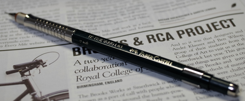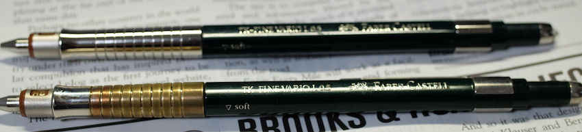 レビュー:FABER-CASTELL VARIO L 0.5 Category:筆記具 Date:2014年02月05日 FABER-CASTELLは我が青春のペン。 こんばんわ、車が雪に埋もれました。sepdectryです。 少し前に、アナログとデジタルの間で(仮)様と相互リンクさせていただきました。 これからもよろしくお願いします。 本日ご紹介いたしまするは、ファーバーカステル社のミドルレンジペンシル VARIO L 0.5です。 前回も、ファーバーカステル社の製品を高校時代から使ってたと書きましたが、 このペンシルは確か、高校3年から大学時代まで使っていたものです。 それ以前はもう少し安いファーバーカステルのペンシルを使っていたような? グリップの部分を壊してしまって、これに買い替えました。 特徴は、グリップ部分を回転することでSOFT HARDの切り替えが出来る点でしょう。 HARDだと芯が固定され、SOFTだとサスペンション機能が働いて 強い力が加わると芯が引き込まれるようになります。 芯を折れにくくするためにという機構なのですが、わたしの 寝かせて筆記する癖のせいで、SOFTにしても気をつけないと ポキポキ折れちゃいます(笑) ノック部の消しゴムは繰り出し式になっており、消しゴムだけで別売りされています。 なかなかの消し味で、細いポイントを消せるために大変重宝します。 別売りで取り替え可能なのも、精神衛生上よろしいと思います(笑) 実はこのペンシルは二代目で、初代がこちらです。 使いすぎてグリップ部分のメッキがはげて、真鍮の地がでちゃってますね。 ここまできちゃうといっそのこと、ヤスリで削って全部はいだほうが それはそれで味があるかな?とも思うのですがどうでしょうか。 初代は青春の思い出と一所に、デスクの中に鎮座しています。 PR