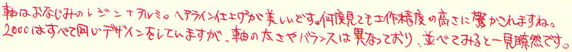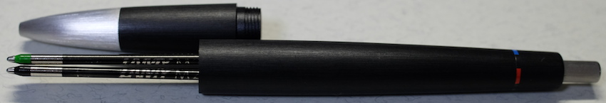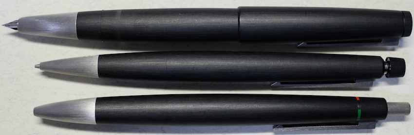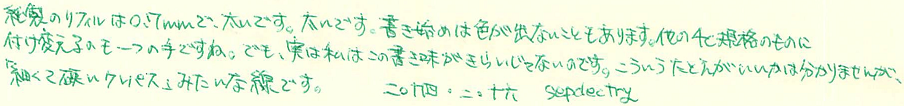 レビュー:LAMY2000 マルチペン Category:筆記具 Date:2014年02月16日 LAMY2000は本当にすばらしいですね。ローラーボールを手に入れれば 全部揃うのですが、おそらく使用頻度が相当低いのでなかなか買う気になれません。 こんばんわ、sepdectryです。 3DSやらスマホやらタブレットやら、スタイラスの使用頻度はかなり高いですね。 わたしはあまり使わないですが。タブレットでも買ったらスタイラスにするかもしれません。 やはり万年筆が一番太く、ペンシルは細いですね。流線型のフォルムと ワンポイントの金属部分が本当にすばらしいです。クリップ部分もこの大きさで バネ式。ウラにはこっそりGERMANY。 リフィルの先端に樹脂で色がつけられているのも、色を選択する際のスムーズさに 一役買っています。違うのが出たらノックを止めればいいですからね。 ゲルインクの4c規格リフィルもありますが、インクが瞬く間に切れるので ちょっと・・・という感じですね。 滑らかさ、太さ、インクの持ち、色とマルチペンは個々の好みがかなり出ますね。 PR