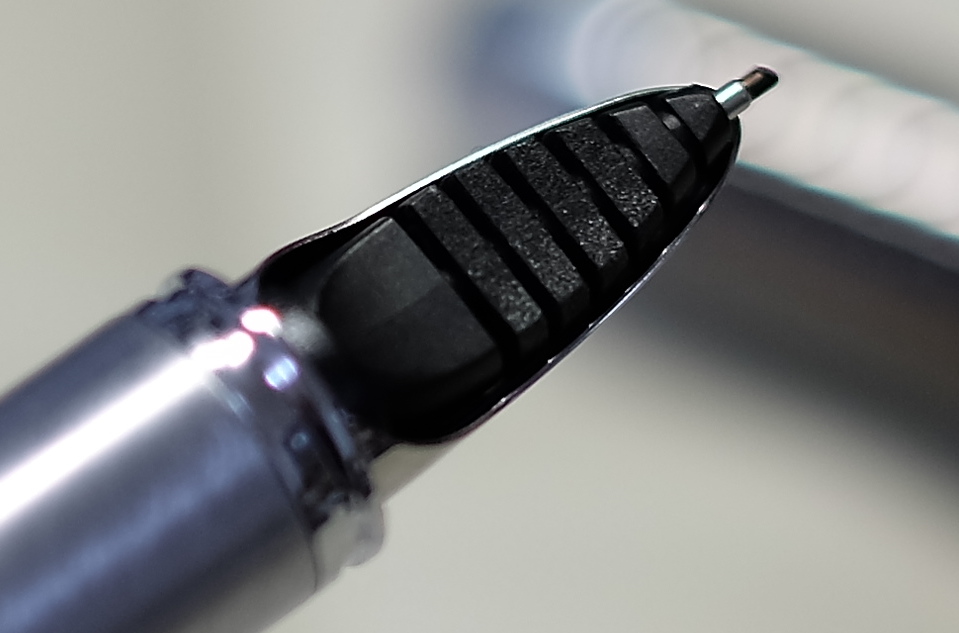 レビュー:PARKER 5th ガンメタルチーゼル Category:筆記具 Date:2014年02月02日 最近は2月だというのに暖かく、いい感じの気候ですね。 今日なんて昼間はコートがいらないくらいでした。こんばんわ、sepdectryです。 本日はパーカー社の「第五の筆記具」こと、5thのレビューをしてみたいと思います。 一時期は新聞紙の一面広告にもなっていたりしてびっくりしました。 パーカー社といえば矢を模したクリップですね。 万年筆はもちろんのこと、ローラーボールやペンシルを数多く出してきた 同社がこういう挑戦的な商品を出すのは良いですよね。 軸はガンメタルブラック。5thインジェニュイティという、一番最初に出たシリーズの 廉価版のような感じ。個人的にはブラウンとピンクゴールドの軸がクラシックで好き。 画像を見ていただければ分かると思いますが、削れてます。 わたしはかなり寝かせて筆記する癖があるので、削れの角度もあって かなり字が太くなってしまいます。 でも、削れた後の書き心地はかなりいいんですよね。 かすれなくてすべりのいいフエルトペン。そんな感じです。 全体的に少し辛口な気もしますが、個人的にはこの製品には満足していて、 仕事でもかなり使う頻度が高いです。にじまず、かすれないのがポイント高いです。 もっと鮮やかな赤や、落ち着いたブルーブラックをリフィルのラインナップに加えて欲しい! 出来れば、もっと細いペン先もあわせてお願いします!パーカーさん! PR