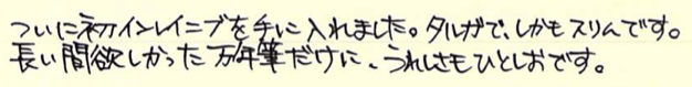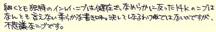 柔らかいニブではないのですが、独特の優しい書き味が人気です。インレイニブを