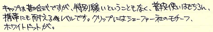シェーファーのニブはペンポイントにかけて上に反った形をしているのが特徴で、