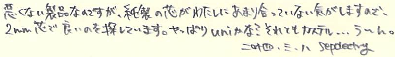 uniの2.0mm芯は名品ですよね。買ってみようかな・・・。